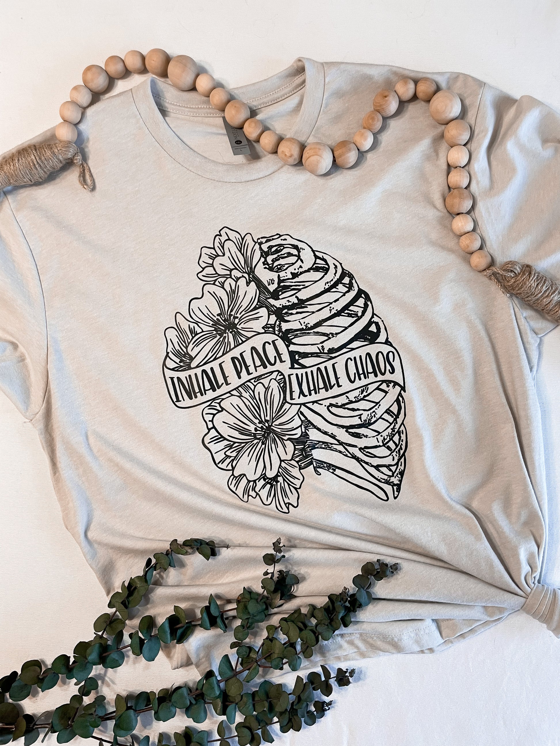 "Peace and Chaos" tee is the softest tee with the coolest skeleton rib cage and floral design.